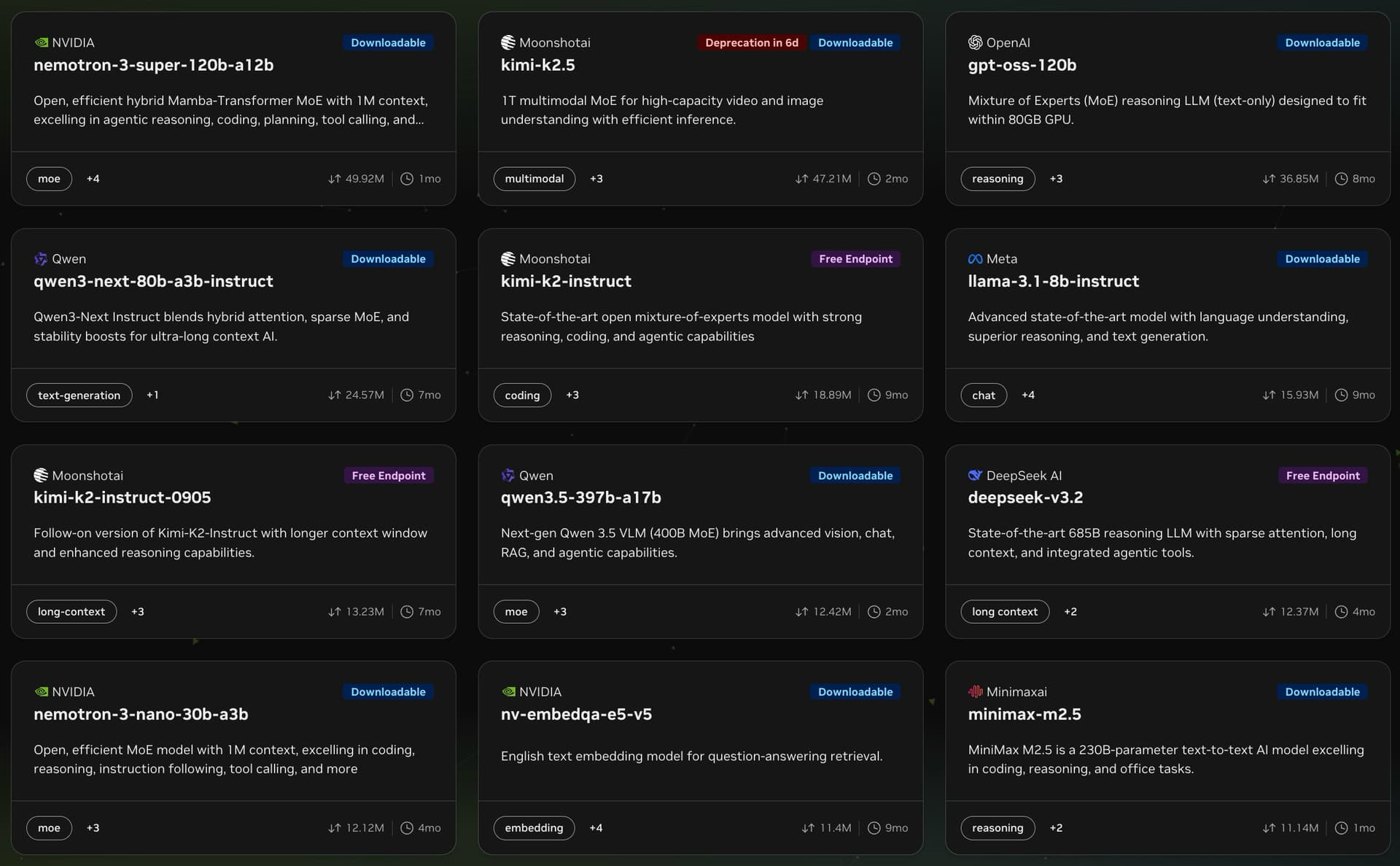 - Lifecycle: Note that some specific versions (like Kimi-k2.5) may have deprecation notices on the NVIDIA portal as newer versions like Kimi-k2.6 or GLM-5.2 are rolled out. [1, 2, 4, 20, 21]